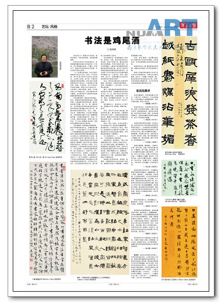 2013年1月19日《新华日报》刊登公司美术系张其凤教授《书法是鸡尾酒》的通讯报道。全文转载如下: