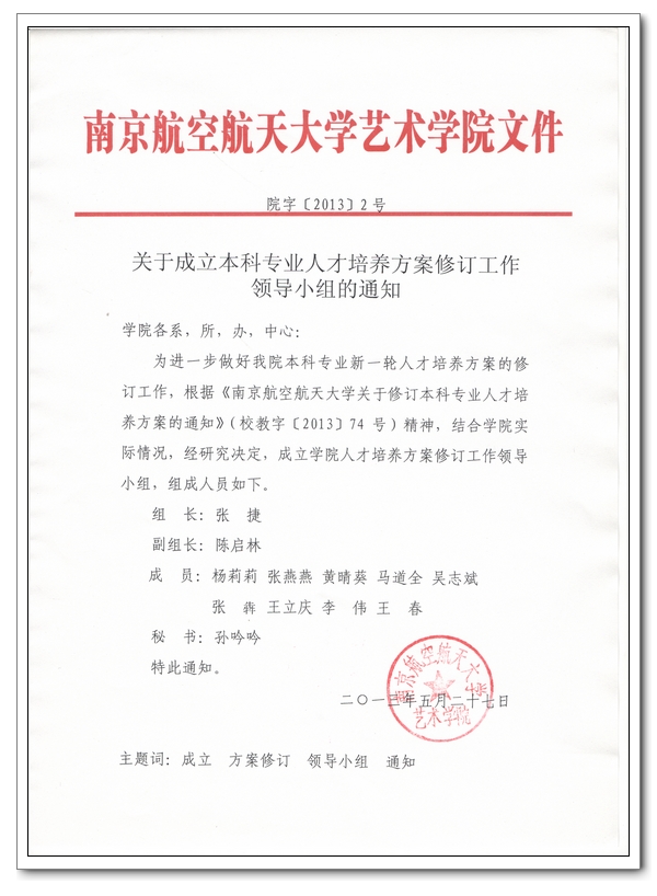 关于成立本科专业人才培养方案修订工作领导小组的通知