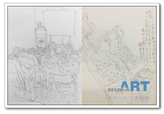美术系王立庆教授现场所绘速写――为新生上了大学“第一堂”示范课