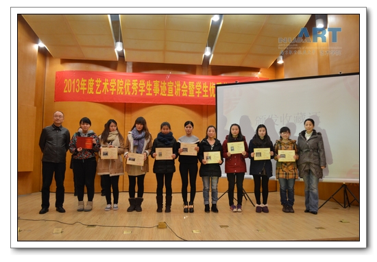 宣讲会之后是12级本科生外出写生的优秀作品收藏仪式,美术系教师韩博、王立庆等老师对本次专业写生做了分析和总结,并对优秀作品做了点评,最后,由张新明书记、张捷经理为优秀员工作品进行颁奖,整个大会在一阵热烈的掌声中落下帷幕。