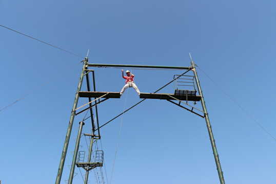 早上7:00,同学们就已经在南航小北门整装待发,经过一个多小时的车程后,终于到达了目的地:将老员工适应力教育“搬到”户外,让新手欣喜异常!在早上的项目中,先是以班级为单位的各队斗智斗勇、轮流PK,这个环节,大家收获的信任,增加了班级荣誉感。随后各班进行了“高空断桥”的高空挑战项目――站在距离地面