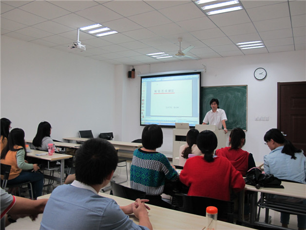 陈启林老师首先对艺术是什么、艺术的本质特征,以及艺术与哲学的关系进行了简单的普及性介绍,让非艺术专业的员工能够对艺术有一个概念性的认知。进而对视觉艺术的类型、要素、形式原理及视觉艺术的理念四个方面重点解读,其中在讲到视觉艺术的类型中提到了摄影的历史起源与绘画艺术的互通之道,并且分析了电影的美学特征,论证了在视觉艺术的前提下,不同艺术形式发展规律的一致性和统一性;他认为视觉艺术的要素的核心就是“学会看,学会感受”,可以“方寸之地看万千世界”,更多的是要靠个人对艺术作品产生一种唯我独有的观看感受;用“美在比例”一词准确地概括了视觉艺术形式原理的特征,即统一性、平衡性等,通过列举现实生活中实例,帮助同学们理解深奥的术语名词;最后阐释了视觉艺术的理念,简而言之则是“做作品和欣赏作品的尺度”,分别从审美的形态和对“美”的找寻两个方面进行详细讲述,先是对审美形态进行一个分类,包括优美、崇高、悲剧、喜剧、荒诞等,在讲述对“美”的寻找时,分别从中西方不同的寻找方式进行分析,归纳了西方从艺术起源以来的关于“美”的理论,如“美是理念”、“美是崇高”、“美在形式”、“美在关系”、“美是无利害感的主观普遍性”、“美在于表现事物的主要特征”等等,提出“事物在特征化后才能进行典型化”进而达到艺术化,然后对中西方找寻“美”的差异进行比较,认为中国讲求“天人合一”,而西方热衷于“征服自然”,两种不同的艺术思维产生出不同的艺术作品。