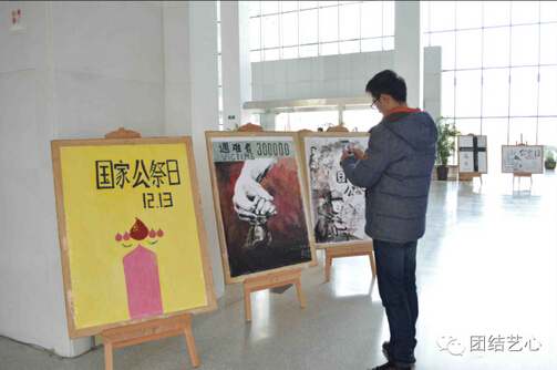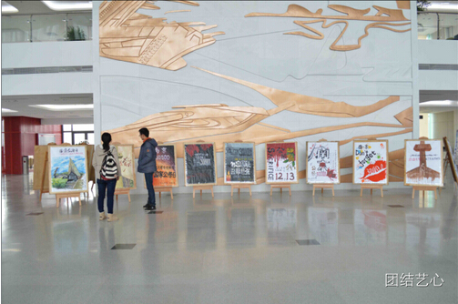 “红旗不倒”、“勿忘国耻,吾辈自强”……这组海报以“铭记历史,勿忘国殇”为主题,通过悼念死难者同胞和展现大屠杀期间的南京两大主题,号召同学们牢记中华民族屈辱与抗争的历史。整组海报以暗色调为主,凸显了红的热烈。“12月13日,是一个让人无法忘怀的日子,我们希望能够利用自己手中的画笔向全校师生诠释我们心中的公祭日,唤起大家心中的爱国之情。”谈到创作初衷,活动负责人刘阳同学说道。