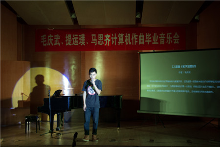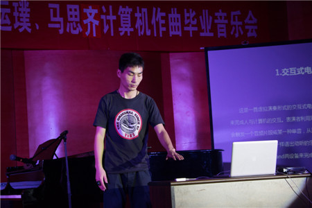 毛庆武的作品《弹指一挥间》是一首虚拟演奏形式的交互式电子音乐作品,作者利用Leapmotion及Hothand两个硬件设备来完成人与计算机的交互。表演者利用双手不同的动作手势,来触发预置好的音乐片段,每一个动作都会触发一个音频片段或某一种单音,从而组成一首完整的乐曲。没有真实乐器,却能通过双手在空中挥舞,像演奏真实乐器一样谱出动听的旋律,完成真正意义上的虚拟演奏,令观众感受到人与计算机交互的神秘之感;作品《好朋友》是一首 R&B风格的流行歌曲,歌曲缓慢流淌,轻声吟唱,为观众营造了温暖的感觉;作品《让人成长》在流行歌曲编曲中加入新鲜元素,配器上使用了环境音效和传统管弦乐器,利用环境音效来增加听众的带入感,单簧管,铜管,大管,穿插出现,丰富了乐曲的表现;作品《名字没想好》则运用了最传统的流行歌曲结构与配器手段,在歌曲伴奏的编配中作者全部使用原声乐器,没有使用任何合成器音色,并由作者自弹自唱完成将音乐会推向了高潮。 提运璞的作品《颜色男孩》音乐与视频搭配,是为了庆祝南航bevictor伟德国际10周年院庆而创作的一部宣传片。也是作曲者考入南航bevictor伟德国际的第一部电子音乐的作品,风格俏皮、诙谐,本曲是根据视频内容主题而创作的。编曲主要运用管风琴、古典吉他、钢琴、贝司等传统的流行音乐的编织手法。作品内容表达了大学校园里的男生、女生之间懵懂、俏皮的想法;作品《即兴爵士G大调》是纯钢琴曲,开始为跳跃性的旋律,中段转为稍带抒情的情感后,又很快的转回到了开始的欢快感觉,表现出一种童年的无忧无虑的自由感;作品《蓝色之空》是一首钢琴加管乐的的轻音乐,钢琴为主要的伴奏声部,木管乐器进行交替式的旋律SOLO,并适当加一些其他的乐器做填充,旋律整体先淡后浓,最后又回归到开始的那种安静的画面,描绘出了雨后初晴,蓝色天空之下的一种宁静;作品《摇摆火车》是一首拉丁爵士风格很浓的电子乐曲,旋律音色采用与传统乐器不同的电子合成器音色,但整体的伴奏风格采用的是以铜管乐为主的大乐队编织。旋律多变化音,节奏大量使用切分音的形式,表达出一种热情感。中间段的钢琴SOLO并没有按照规整的节奏去弹奏,而采用爵士里很常用的即兴手法,表达了一种奔放,热情的舞会场面;作品《心魅》改编自日本著名动漫《龙珠GT》的插曲,重新运用电子音乐进行演绎,此曲整体风格励志向上,表现了即使遇到困难也要坚持不懈去努力的一种内心情感。 马思齐的作品《Highway Rider》表现了高速公路上流动的灯光,匆匆行走在夜色中的人群。隐藏在城市深处的是人们无法压抑的梦想。这首电子音乐采用经典的EDM风格编配,描绘了梦想在人们心中的模样;作品《33》作为跳舞音乐,为了迎合舞者的情绪,在重复循环的节奏中寻找新的元素和变化,并蕴藏着作者对音色的全新设计;作品《Twisted》为仿真弦乐和电子音效而作,是无调性写作手法的习作,为大提琴、小提琴与中提琴刻画了三个不同形象,并交织在一起,辅以电子音效共同营造了充满对抗的纠结情绪;作品《Dark Night》 和《秋叶改编》运用了温暖的电钢琴音色和流行音乐中不可或缺的吉他音乐元素,为听众带来了不一样的听觉感受。 整场音乐会高潮迭起,赢得了观众的阵阵掌声。最后,毛庆武、马思齐、提运璞三位同学分别发表了个人感想,他们非常感谢三年来