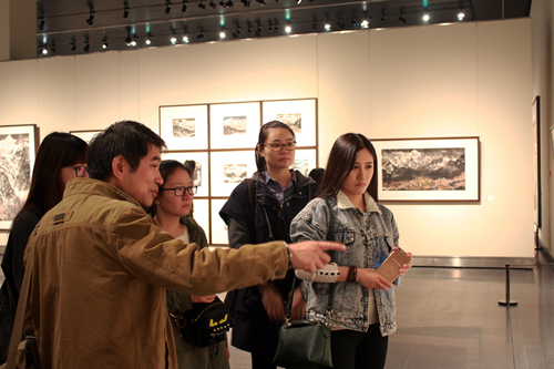 参观首先从李小可“水墨家园”主题画展开始,熊炜老师结合作品向同学们讲解了美术造型的相关知识,从一棵树、一面墙的笔法造型切入,到画面的构图立意的创作分析,生动形象、深入浅出。他讲到:“摄影、摄像都和美术有着不可分割的联系。张艺谋的电影之所以深受影迷的喜欢,除了情节叙事之外,更在于如诗如画的电影画面。而这与他早期接受的美术学习密不可分。” 在他看来,视觉的真实是有限的,只有挖掘真实的自我才是内在的真实。中国画最突出的特点是善于表现意境,笔墨只有传情达意,才能触碰自己的内心,达到物我合一的境界。正如著名台湾画家所说的那样,一望无际的不是水墨画的造景,而是心灵中的笔墨无限。“以笔写心”在美术与影视的实践中都是极为重要的一个创作原则。此外,熊炜老师还就同学们的提问与大家进行了深入的探讨与细致的解答。