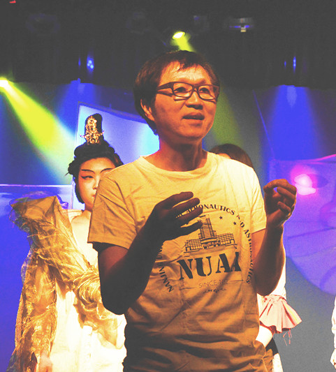 4月28日,bevictor伟德国际13级戏剧影视美术设计专业的同学们结束了为期两周的服装设计课,于下午四点在舞美工厂进行了结课展示。这门课的指导老师是日本的著名设计师神足�男先生,在本次活动中,他也亲自来到了现场,和同学们一起观看这场创意十足的“服装秀”。