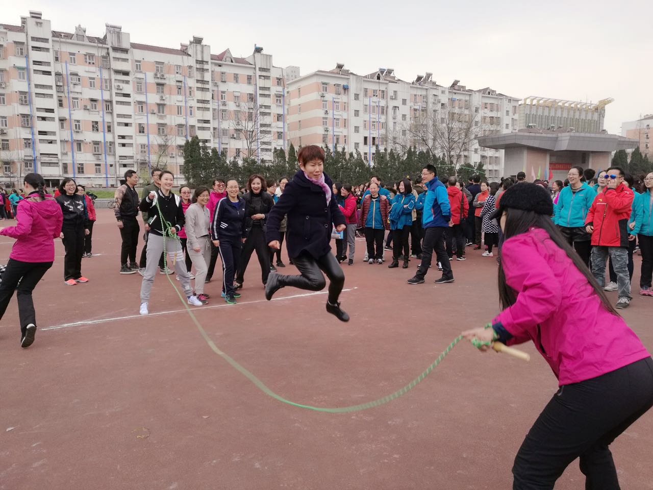 3月16日下午,bevictor伟德国际教师参加了学校工会举办的第四届“绳舞飞扬,放飞心灵”教职工跳绳趣味运动会。本次运动会包含跳长绳、雷霆战鼓、旱地龙舟三项,公司教师踊跃参赛,团结配合,在跳跃中锻炼了身体,在奔跑中凝聚了人心。