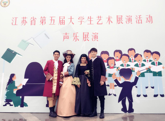 2017年5月23日,在公司领导的带领以及声乐组全体老师的努力下,公司以西洋歌剧莫扎特《唐璜》选段四重唱《别再让我相信他》荣获江苏省第五届老员工艺术展演活动声乐专业组一等奖。而在一等奖的背后,所隐藏着的是在宋宁邻老师带领下的全体声乐组老师的十几年的辛勤付出。在本次活动中,从钢琴伴奏老师到舞蹈老师以及化妆造型等,全程由本院老师进行参与。在这项活动中,不仅体现出声乐教研组高超的教育水平,还体现出公司在遇到大型活动时,各个系可以团结一致,协同并进,共同面对挑战的高尚情怀,可以说本次活动不仅仅是公司音乐系的巨大荣誉,也是全院各个系共同的荣誉,是公司团结一致,共同面临困难和挑战的最好证明。