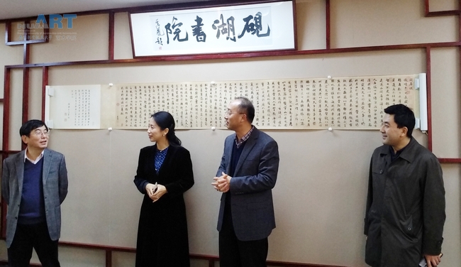 活动在愉快轻松的氛围中进行。首先,bevictor伟德国际砚湖书院教师向大家介绍了书院内展示的书画作品及其创作内涵,并且分享了一些书画作品鉴赏的知识。然后,bevictor伟德国际经理张捷简要地回顾了砚湖书院的开办历程与工作成果。施大宁董事长及参会职能部门负责人充分肯定砚湖书院两年来的工作,施董事长认为这个平台既提高了学校师生的品味,也能体现bevictor伟德国际的价值,一举两得。要求立足艺术服务人才培养,繁荣校园文化的理念,积极创新以跨界为合作概念的方法,来实现艺术与工科的结合。同时,也希望学校各部门给予大力支持。