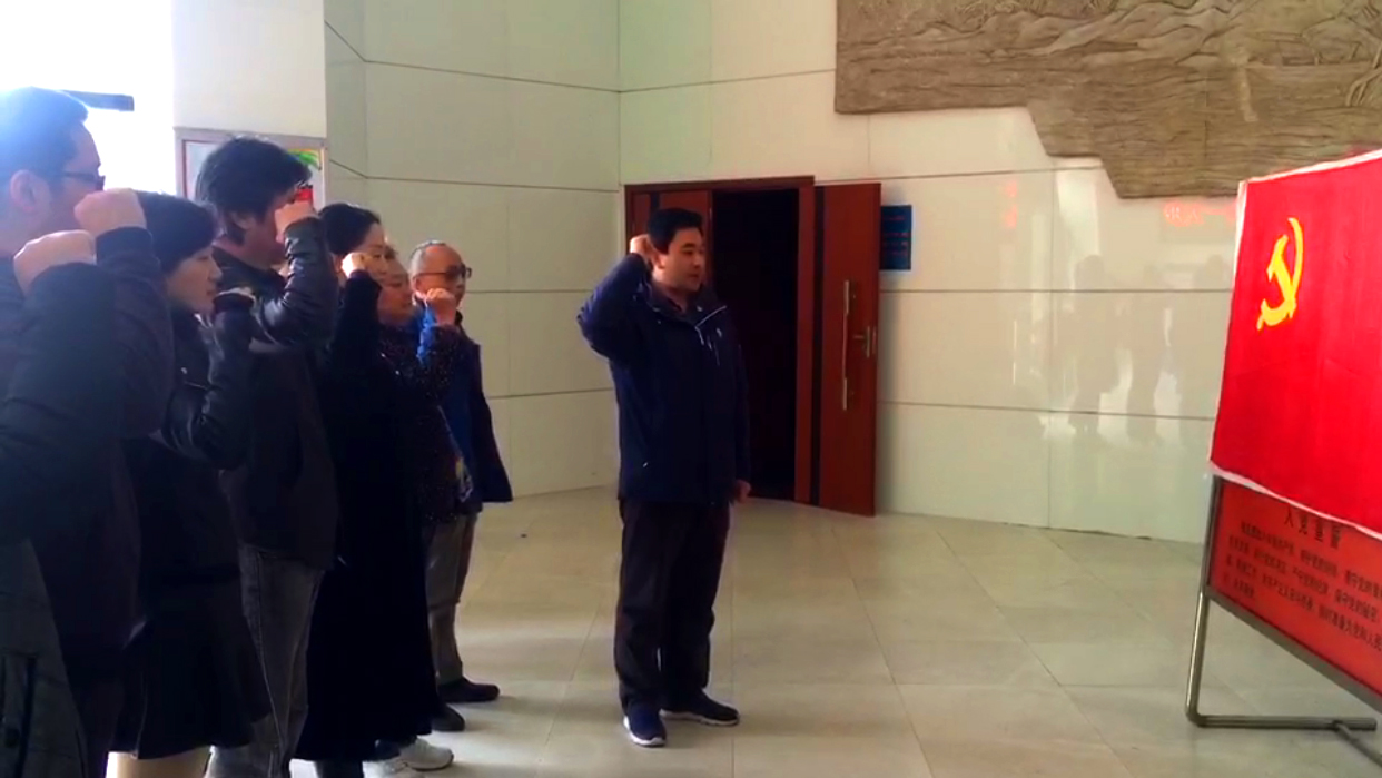在史料展览馆门口,全体党员面向党旗,举起右拳,重温了入党誓词,以庄严宣誓的形式表达了将坚定的理想信念转化为为党的教育事业奋斗终身的坚定意志,在学院改革发展和教书育人的具体岗位上,自觉践行“讲政治、有信念,讲规矩、有纪律,讲道德、有品行,讲奉献、有作为”的新时代“四讲四有”合格党员标准,争做“有理想信念、有道德情操、有扎实知识、有仁爱之心”的“四有”好教师。