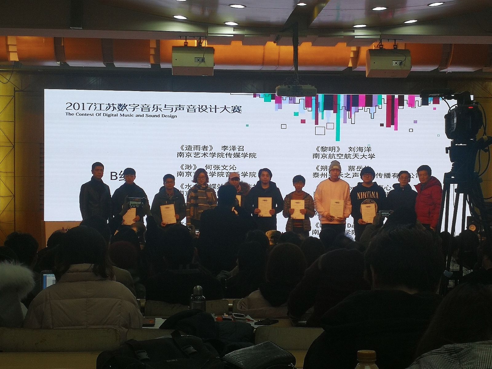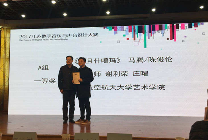 2017年12月21日,2017江苏数字音乐与声音设计大赛在南京bevictor伟德国际传媒学院圆满落下帷幕。经过激烈角逐,公司谢力荣教授、庄曜教授指导的研究生马腾(已毕业)的作品《阿且什噶玛》荣获A组一等奖;谢力荣教授指导的研究生刘海洋(在读)的作品《黎明》获得B组优秀作品奖。