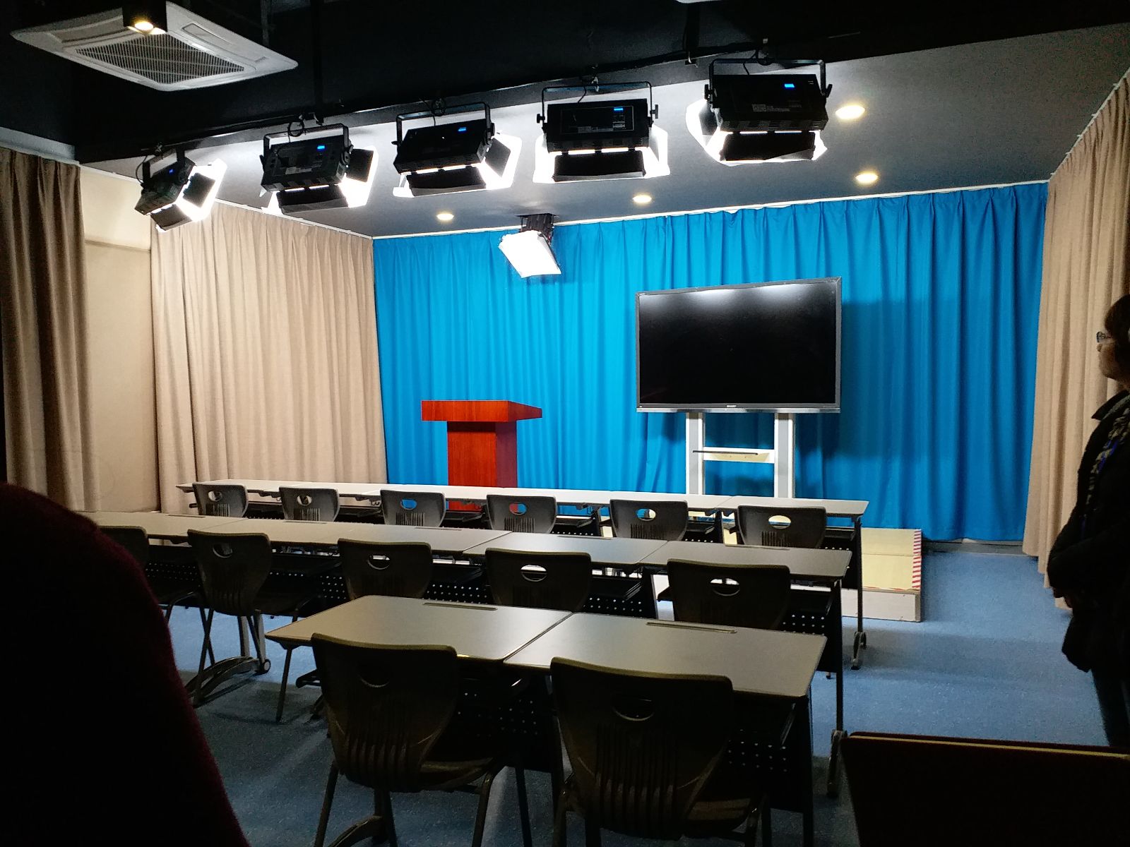 2018年3月1日上午,bevictor伟德国际经理张捷、党委副书记张林带领bevictor伟德国际戏剧影视美术设计专业负责人王立庆老师、环境设计专业负责人赵中建老师、广播电视学专业负责人马道全老师以及新闻系吴志斌、王鹏飞老师等八人来到将军路校区1号楼四楼信息化技术中心现代教育技术部,参观了参照省电视台标准建设的2间课程录播室、虚拟演播室和导播室、视频编辑室、教师技术支持室、化妆间等配套环境。通过教室管理系统,可以查看教室实时授课情况。
