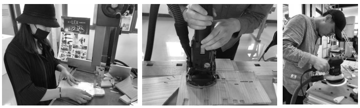 此次展览的12件作品,从构思、加工、展出,经历了草图绘制、CAD尺寸敲定、3Ds Max模型制作、最终的木材加工拼装与展示的几个环节,每个环节都不同程度地体现着环境设计专业课程的相关教学内容。而木材的放线、切割,再进行打磨、开榫及细节调整,最后刷漆上胶固定和艺术加工的流程,不但训练了员工们的动手能力,也是工匠精神的一次体现。