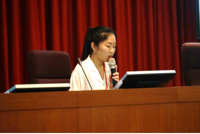 大会上,台湾艺术大学贺秋白教授开场以大量的数据与专业的调查研究方法向与会者展开了台湾实体与数位出版营收知识与其发展的脉络。其严谨的学术态度让师生们肃然起敬。公司同学任�玮、李晴阳、於慧沁、邹子薇的论文发表紧随贺秋白教授之后,第一个出场的任�玮同学将IP改编剧热潮与受众心理的变迁娓娓道来,论文选题与架构赢得了评论人嘉奖,内容尚不成熟之处评论老师也一一指出,并提出了修改意见,为论文在后续的修改完善提供了宝贵的启迪。