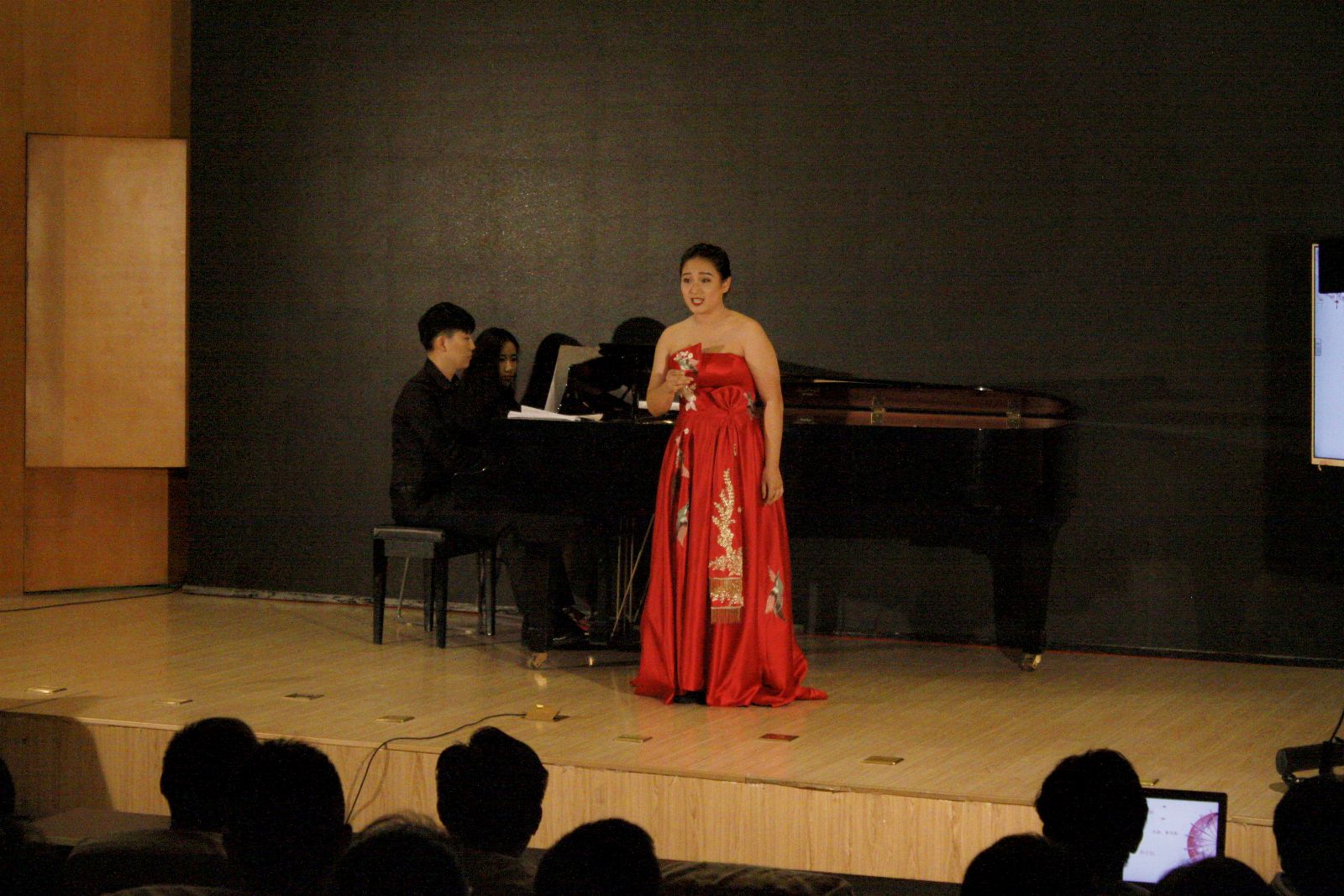 “作为一名音乐专业员工,在自己的毕业前夕为大家演出一场主题鲜明的音乐会非常有意义,音乐是最具有感染力的,感谢我的导师邱老师能够将思政与我的音乐会相结合,让这场音乐会有了灵魂和精神”本次音乐会主唱韩佳韵动情的说道。