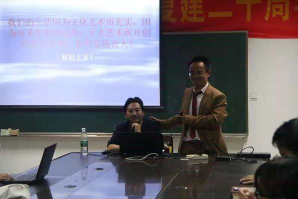 邱世鸿教授讲座中以自身经历,自身创作,自身感悟为例,对中国士人所代表的精英文化和高雅艺术作了厘清,并强调了士人艺术对时代的担当。同时反对三俗艺术之泛滥,倡导士人艺术的正能量。尤其是对诗词,书法,绘画,篆刻四大艺术特点与中国文化之关系,作了美学上的阐释。邱教授强调优秀的审美传统,并结合现实指出了古今之异,强调今日迫切需要士人艺术。士人艺术对于雅俗共赏,成人成己,塑造美境,创造精品,完善人格有着积极的指导意义,值得弘扬光大。其观点获得了师生的认可和广泛好评。