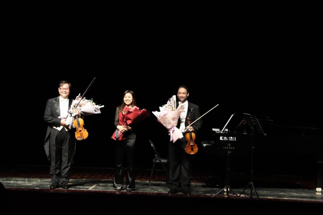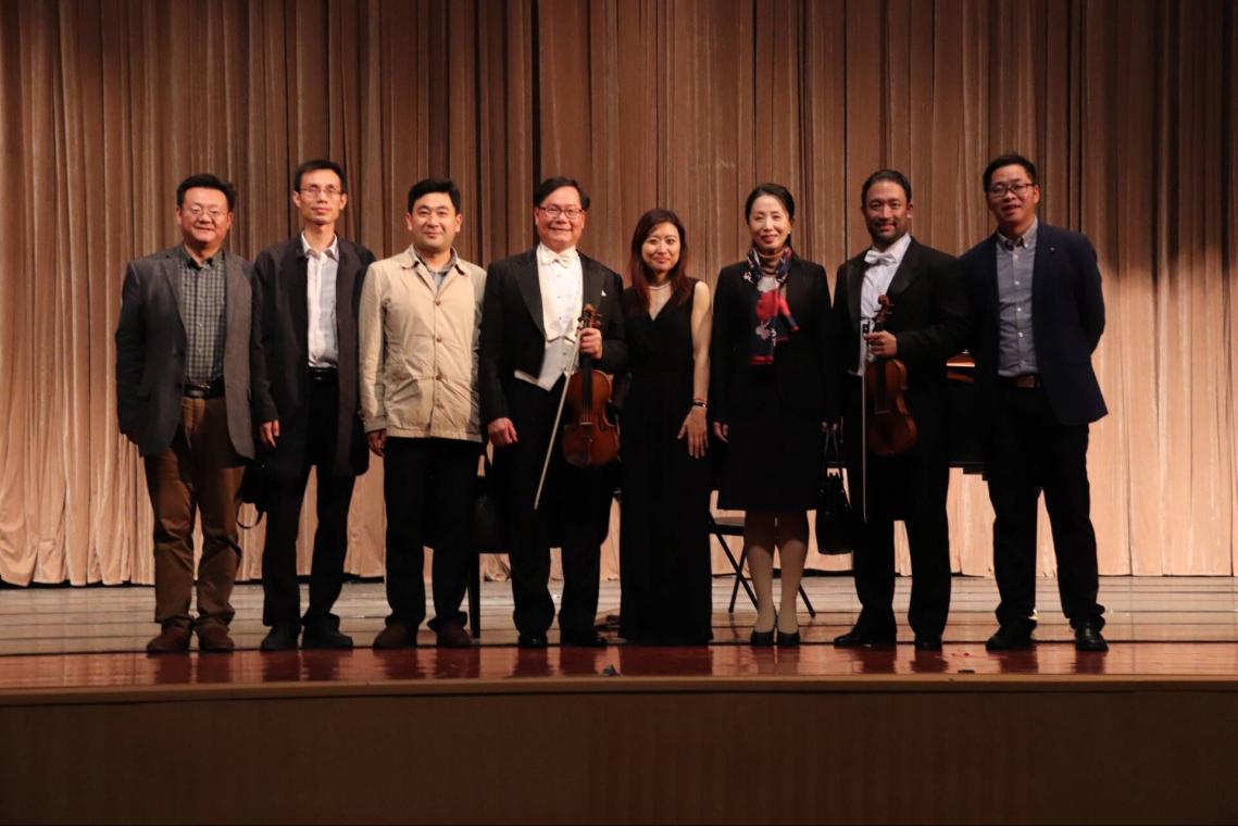 三位演奏家致谢下台后,观众们意犹未尽。在观众一次又一次热烈的掌声中,三位音乐家先后多次返场并加演了三首作品,分别是苏显达先生和张丽明女士合作的《月亮代表我的心》、《望你早归》,以及最后三人合作演奏手机铃声串烧“Ja ,hello!”。音乐会在观众热烈而持久的掌声中圆满落幕,并吸引了众多观众和艺术家合影留念。此次音乐会给公司师生留下了深刻的印象,有同学表示:“这场音乐会十分精彩,让我感受到放松和享受,听着乐曲不由自主地就静下来了。希望以后还能有这样的机会!” bevictor伟德国际大一员工宋逸文说到:“我是一名bevictor伟德国际的员工,很荣幸能够听到如此高水准的音乐会,也鼓励我要通过自己的专业所学把艺术和文化传递给更多的人。”
