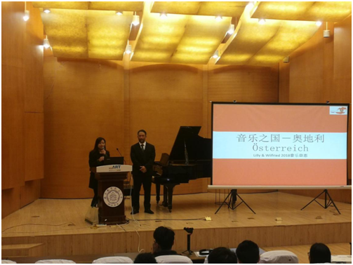 三位艺术家来校交流期间,还开展了“音乐家的艺术与生活”的交流,分享了自己的音乐人生,并带领大家了领略了奥地利的风土人情,通过影视画面让观众见识到奥地利维也纳的音乐文化,尤其是享誉世界的维也纳金色大厅,帮助大家如何提升音乐水平与艺术鉴赏能力同时,他们还分享了维也纳交响乐团里的趣事,使师生在谈笑中感受到艺术的魅力。