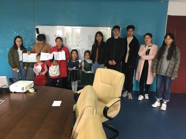 在与社区里的两位主管志愿者交接好后,志愿者们开始布置活动教室、整理活动流程。活动首先是由胡方定同学向小朋友讲述与职业相关的知识,从一些常见的职业到一些鲜为人知的职业,孩子们都听的津津有味。在猜有关职业的谜语环节中,小朋友们也都很活跃,纷纷在课堂上和志愿者交流起来。当问到孩子们想当什么职业时,教师、画家是大多数孩子们的梦想。