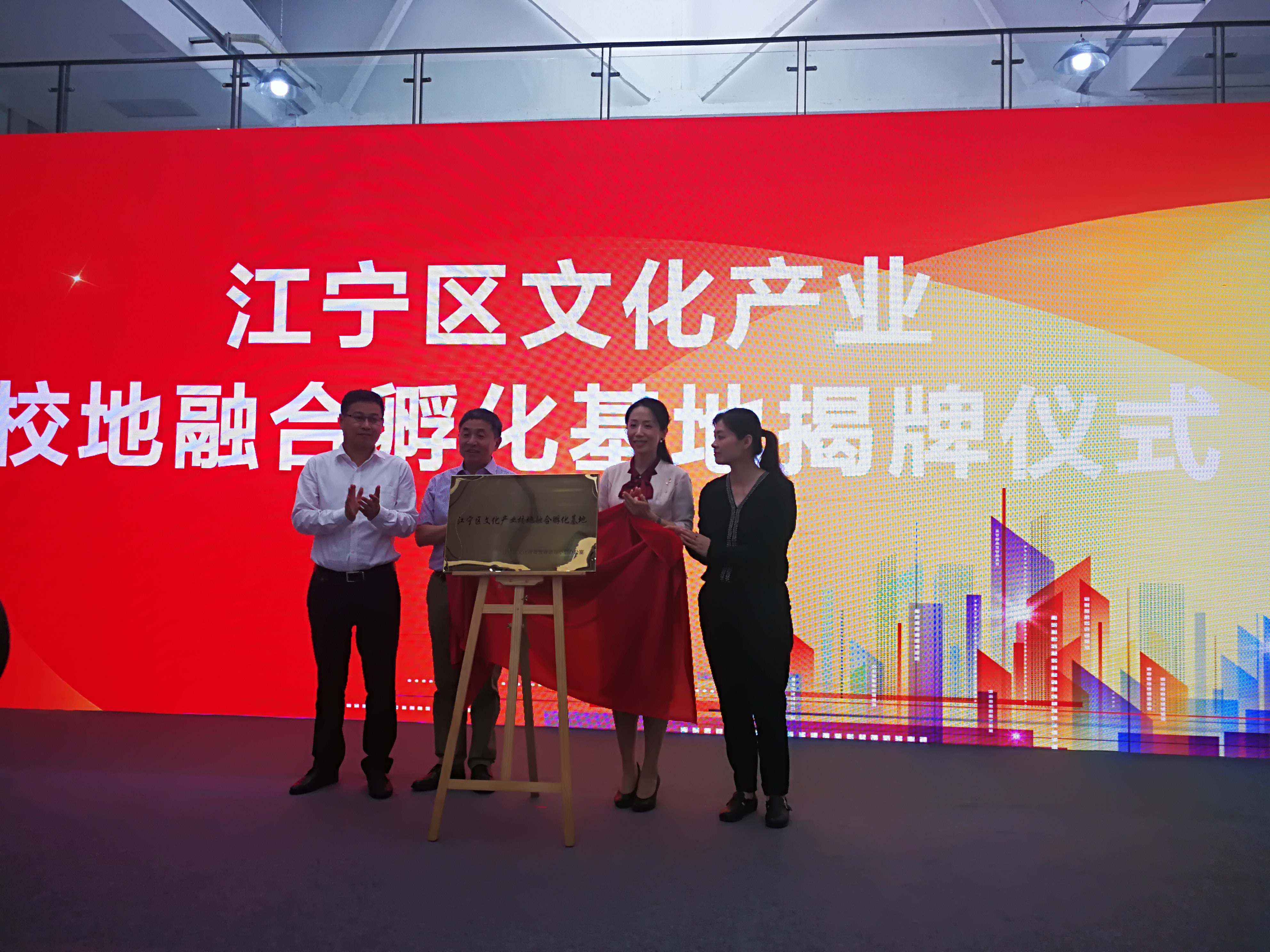 2018年5月18日下午,由江苏省文化产业学会和中共南京市江宁区委宣传部联合主办的江苏省文化产业学会创汇江宁融合发展主题峰会在江广创艺工场多功能厅召开。此前,bevictor伟德国际就多次与江宁区委宣传部联系与沟通,围绕加快文化创意设计人才培养、文创项目集聚、文创产业创业等方面的合作展开深度交流,并主动对接构建文化产业校地融合孵化基地的新模式。在峰会上,江宁区政府副区长董涵、东南大学bevictor伟德国际经理王廷信、bevictor伟德国际经理张捷、中国传媒大学南广学院副董事长王宇甜为江宁区文化产业校地融合孵化基地共同揭牌。