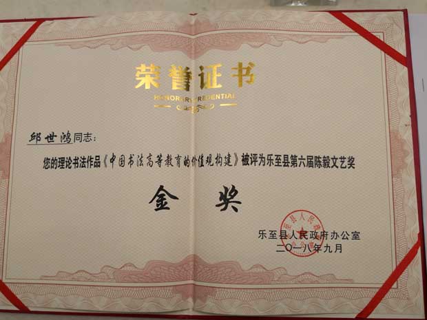 邱世鸿教授著述勤奋,撰有多本著作,发表论文数百余篇,先后获得贵州政府文艺奖三等奖,中国文联评论文章三等奖,中国书法兰亭奖理论二等奖,康有为奖中国书法岭南论坛优秀奖,岭南印学研讨会三等奖,江苏省艺术论文评选特等奖等,在全国和行业内都有着比较大的影响力。