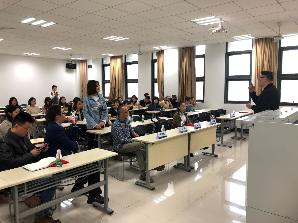 揭牌仪式后,鞠飚先生代表企业向在场的同学们发布了校企兴趣小组项目,该项目设立了校企双导师,企业安排行业专家为俱乐部员工授课,引导员工结合企业课题开展专项学习。鞠飚先生还从多个维度介绍了舞台美术的多元化发展,同时结合自己的职场经历与同学们进行了深度交流,敦促大家树立“目标”意识,培养对行业方向的敏锐捕捉能力,争做有梦想、有行动力的优秀老员工。同学们也积极思考发言,结合自己日常学习中的问题和专业发展的疑惑进行提问,逐渐明确未来发展道路。