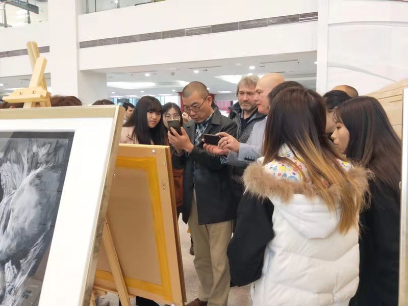 Ridvan Coskun教授主要研究领域是世界历史和风俗遗产研究,他向同学们讲授了土耳其绘画艺术,展示了绘画方面的新材料、新技法、新理念,并现场作画。笔刷蘸着五彩缤纷的颜料粉,在画板上快速绘画,随着色彩的晕染,独特的画面逐渐形成,十分精致细腻。教授所带来的这些富有创意的绘画手法,让员工们大开眼界,收益颇丰。