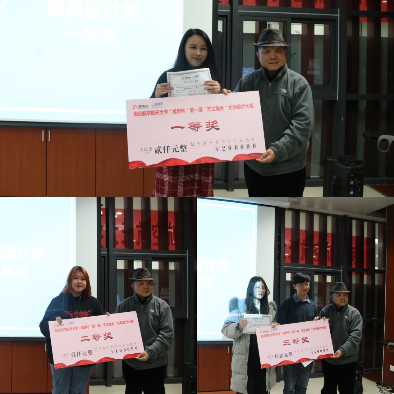 本次比赛的顺利举办也源于各专业老师的指导和南京视野工程有限公司专家们一直以来的关心,借此机会,在活动现场也为一等奖的指导老师颁发优秀指导教师荣誉证书,并为南京视野工程有限公司设计副总张文彬、人事经理陈慧敏颁发创新创业导师的聘书,希望在未来他们能更多的参与到员工专业比赛的指导当中,服务公司员工“艺工融合”能力的全面提升。