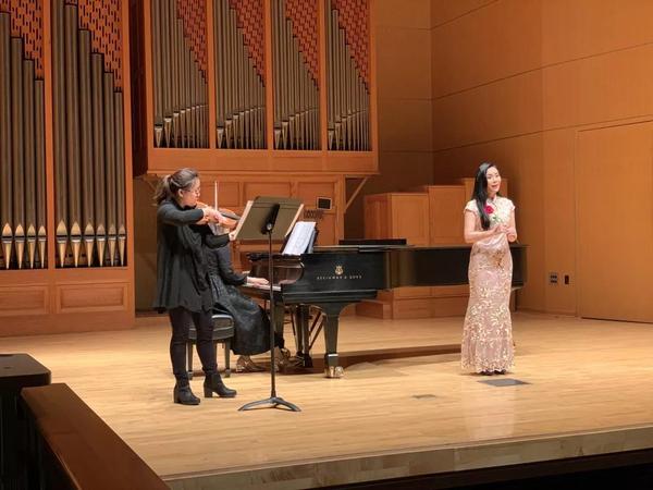 整场音乐会共由14首声乐作品组成,分四个板块,包括中国早期经典艺术歌曲,中国古诗词艺术歌曲,中国民族歌曲,中国近现代声乐作品。艺术歌曲这种体裁起源于西方,演唱中既有钢琴、小提琴这些西洋乐器的伴奏,表现西方音乐特色与中国诗词相结合的融合之美,演唱又结合中国乐器古筝伴奏,表达中国传统美学的意境。