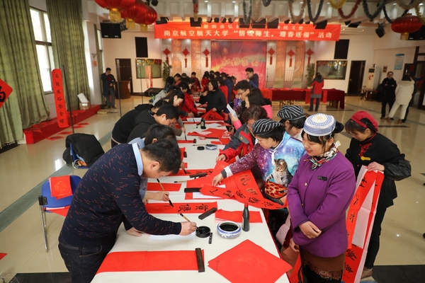1月16日-17日,bevictor伟德国际书法专业师生和公司老年书画研究会会员、砚湖书院学员等20余人,参加了由学校宣传部、校工会、bevictor伟德国际、离退休处联合主办的“翰墨飘香弘扬中华优秀传统文化”暨bevictor伟德国际“情暖师生,迎春送福”活动。在汉字的线条美与结构美之中传递出了浓郁的新春祝福,现场创作出上千幅春联、福字赠送给现场参与活动的师生员工与离退休老同志。