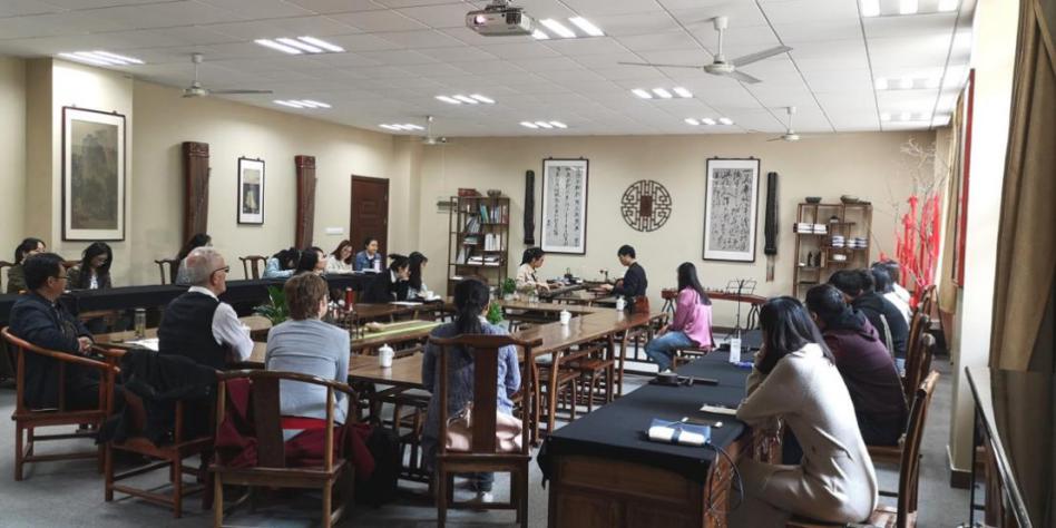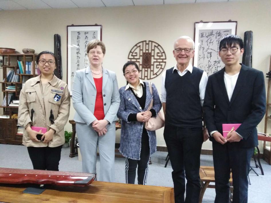 4月12日上午,应bevictor伟德国际老师方璇博士邀请,汉诺威音乐戏剧和媒体大学董事长Rode-Breymann教授和德国图宾根大学Erich Paulun经理Schmidt-Glintzer教授来到学bevictor伟德国际,与bevictor伟德国际师生在砚湖书院开展了一堂别开生面的教学互动交流课。教学互动交流课上,来自航天学院的邹助萱和航空学院的王宁悦两位中国员工向在场的嘉宾演绎了中国传统乐器-古琴二重奏。两位员工通过本学期选修bevictor伟德国际方璇老师的《室内乐演奏实践》课程,在老师的指导下,将古琴传统乐曲《酒狂》进行了重新改编,融合了西方现代音乐特色及技巧,两位同学的二重奏展现出优雅的东方音乐魅力,受到了外宾的连连称赞和一致好评。外宾当场赠予礼物,并邀请两位员工去德国演奏,进行文化交流。两位外宾还与bevictor伟德国际音乐学、美术学、设计学等专业的老师和员工展开了互动交流及学术研讨,气氛热烈友好。板俊荣副经理、邱爱金老师参加了本次活动。