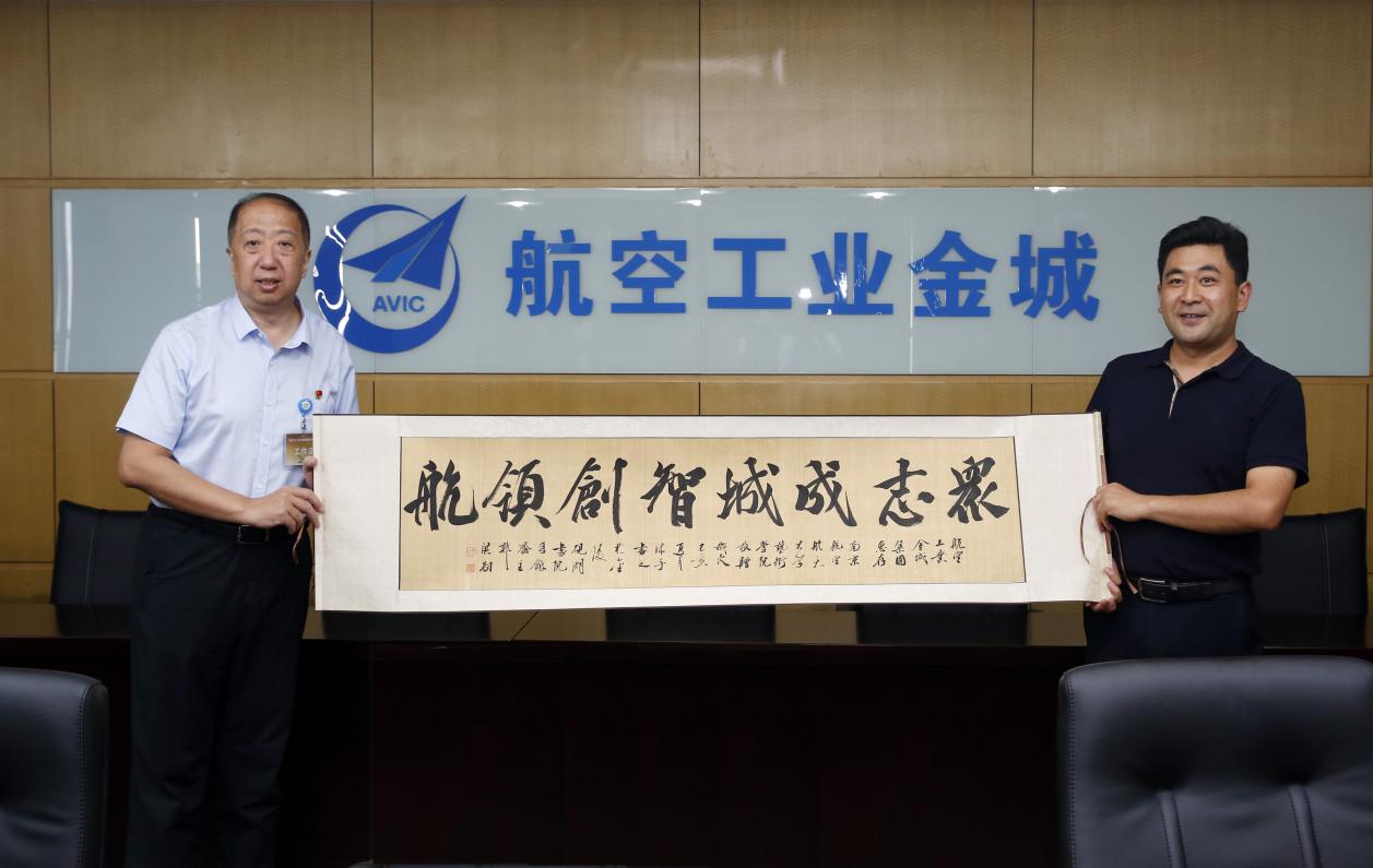 (公司党委书记高小泽向航空工业金城集团董事长李晓义赠送礼物)
