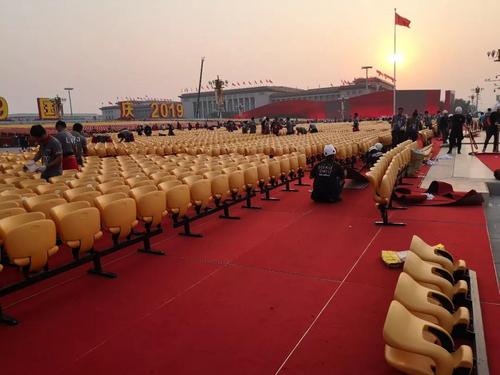“这几个重大事件点之间留给我们搭建观礼台和拆除的时间只有几个小时,2万多平米的观礼台、28000多个座椅和巨型年号都要在这个几个小时内全部搭建、全部拆除,这对我们来说无疑是巨大的挑战,喜人的是每一次的搭建和拆除,我们都战胜了时间!”与此同时他和他的团队还在离庆典不到六天的时间里,不眠不休三天三夜将观礼台立面装饰的整体颜色从灰色改为砖红色。阅兵中我们看到井然有序的现场,舒适的颜色搭配都是他们与时间赛跑的结果。