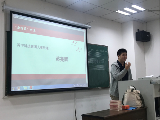 苏宁科技人事经理苏兆晖针对求职能力提升做主题分享。他指出,简历是求职者的第一名片,一份合格的简历不仅需要保证格式简明清晰,更需要准确展示求职者的应聘优势。他强调,准确描述与求职岗位相关的实习经历和项目经验对求职尤为重要。苏经理还指出,在面试环节,同学们要注意保持礼貌的言行、沉着的心态和积极阳光的精神面貌。他还深入剖析了无领导小组面试、半结构化面试和结构化面试的不同特点,不断提升同学们的求职能力和面试技巧。