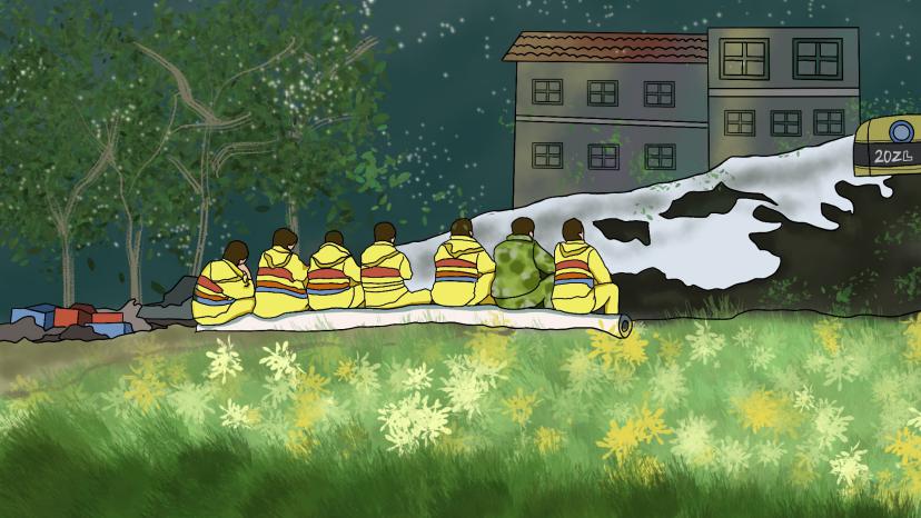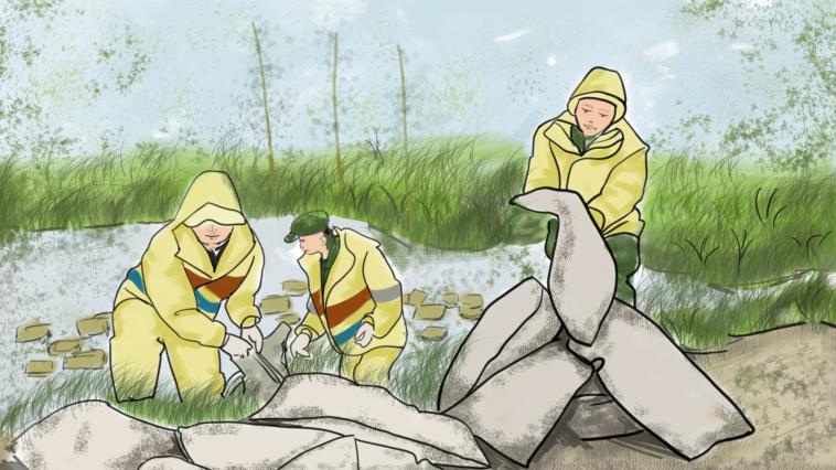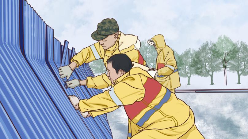 “我是在南方长大的,从小见过许多大大小小的洪讯,”团队成员陈哲祎说,伴随着洪讯定格在记忆底片上的,是大堤上无数英勇的抗洪战士们,他们给了自己无限的安心。“我希望能通过绘画传达自己对这些官兵的敬意,也想让更多的人意识到所有防洪抗洪人的勇敢和无畏。”