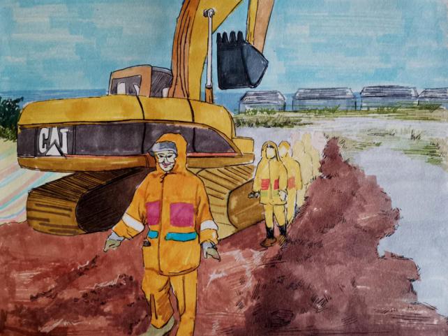 “作为老员工,我们虽然无法亲自加入一线救援队伍,却也能在后方投身抗洪宣传工作,为奋斗一线的防汛人员记录下他们防汛的最美身姿,用画笔传达笔尖上的防汛精神。”称自己是北方小孩的黄雅洁说道:“我没有经历过洪涝灾害,对洪涝带来的损失和灾难是很震惊的,也为抗洪人员的坚定所动容,因此想用一技之长展现对一线抗洪人员的敬意。”