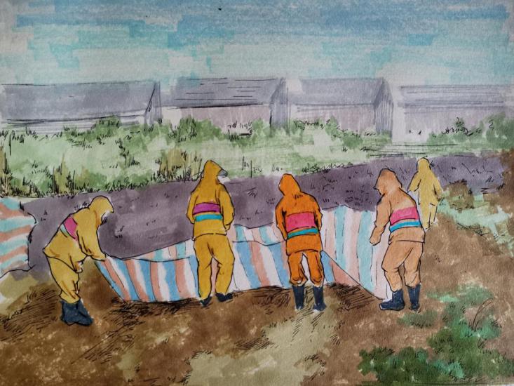 为了保证绘画作品的质量,团队成员在每一个环节都做到了严谨、细致“只有当你自己真正理解了抗汛精神,你才能更准确地通过画笔将其传递出去。”陈哲祎说。为了能够更准确地把握抗汛照片中的细节与所传递的抗汛精神,在下笔绘制前,成员们整理资料相互传阅,对本次抗汛中军人们的贡献进行了基本的了解。