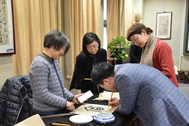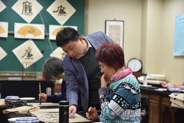 公司党委副书记(主持工作)张钟勤老师也来到现场,与学员们共同感悟书画创作中的“廉”文化。她在致辞中,充分肯定了砚湖书院在“12.9国际反腐败日”开展“以笔墨为器,书写廉洁”主题教育活动的意义。防范和打击腐败是全世界的共同事业,我党历来重视预防和惩治腐败,今年学校以召开反腐倡廉专题党课为标志,启动了“清廉南航”宣传教育周活动,常态化、集中式的廉洁教育氛围已然逐步形成。砚湖书院的师生们是校园廉洁文化建设的积极参与者,自书院成立以来,累计有36个部门755人次教职工来到书院学习,共创作书画作品3800余幅,丰富了教职工文化生活,也为校园廉洁文化的建设提供了一个新的载体。她祝愿老师们能永葆书画热情,创作精品,共同为致力营造崇廉尚俭的校园文化生态贡献力量。