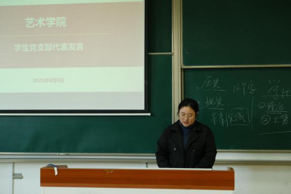 随后,广播电视艺术学员工党支部郭爱桦同学作为代表上台发言。她表示员工党支部应当做好自选动作,结合支部特色,积极参加党史学习教育。