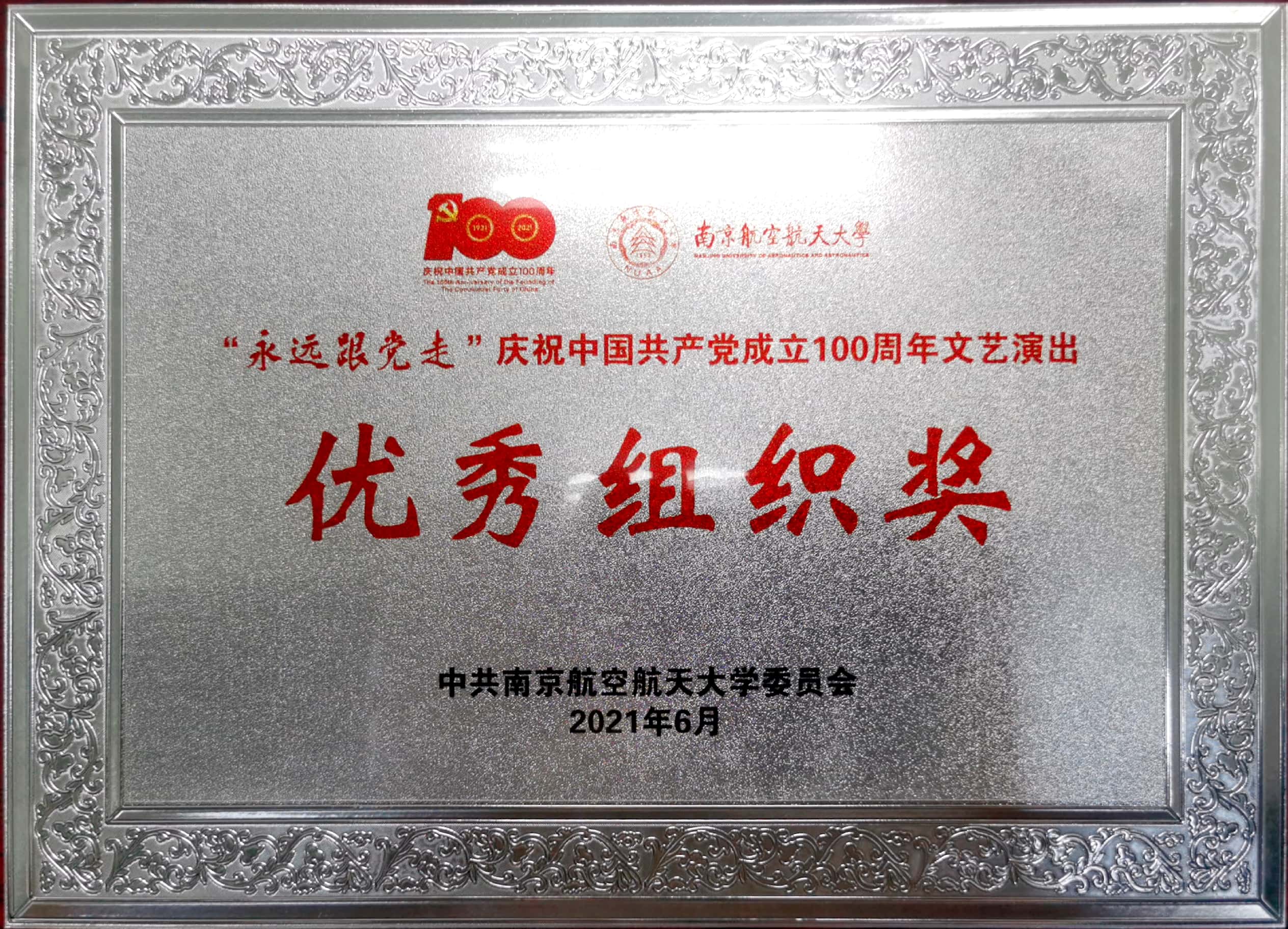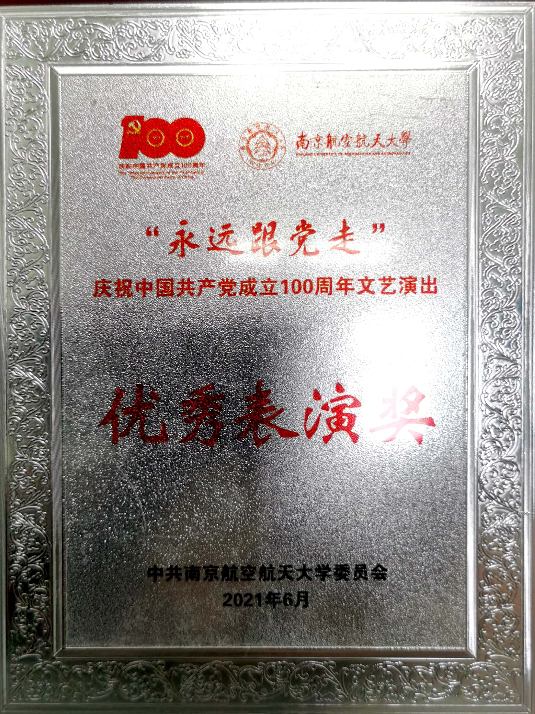 6月30日,在学校举行的“永远跟党走”庆祝中国共产党成立100周年文艺演出中,bevictor伟德国际因优异的表现,获得了优秀组织奖、优秀表演奖两项殊荣。