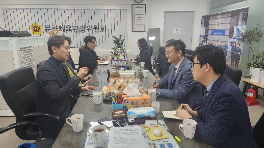 在座谈会上,双方就建设中韩文化交流中心等议题进行了深入的讨论。板俊荣经理对京畿道议会的盛情款待表示了衷心的感谢,并提出了多项合作的具体建议。这些建议包括共同举办国际展览和音乐会、在文化遗产和文化多样性方面进行合作研究,以及加强两国青少年在文化艺术和教育领域的交流与互动。他特别强调了建立中韩文化交流中心的重要性,认为这将为双方的持续合作和相互支持提供更加稳固的平台。对此,黄大浩议员表示了极大的赞同,并承诺将积极与京畿道及其议会的国际交流部门进行沟通和协调,以全力支持双方的合作项目。